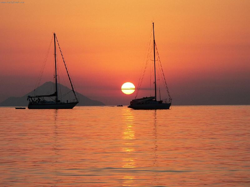 Večer v přístavu-Večer, když jsem usínal na pláži ...(foceno ze spacáku)