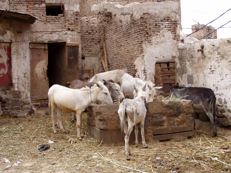 Oslové v centru města Sana´a