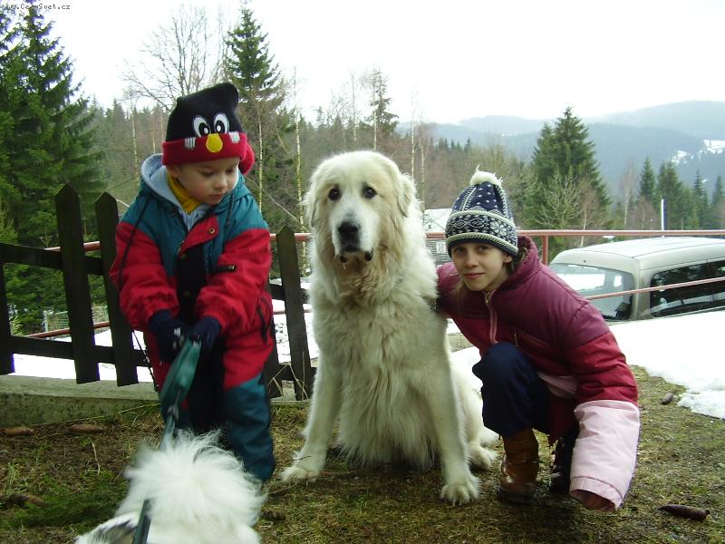 Airen v Kocábech-Ája hlídá horskou boudu se svými malými kamarády
